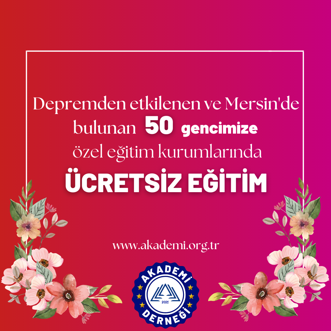 In order to heal the wounds caused by the earthquake and to support our young people who are the bright future of our country, we continue to give our full focus to their education processes. In line with our visits to earthquake victims, we saw that many of our young people who were affected by the earthquake and settled in Mersin were preparing for the YKS, KPSS and DGS exams. In this context, as the Academy Association, we will ensure that 50 young people receive free education in private education institutions. Thus, in addition to the education they receive at school, they will be able to prepare for the relevant exams in private education institutions.
