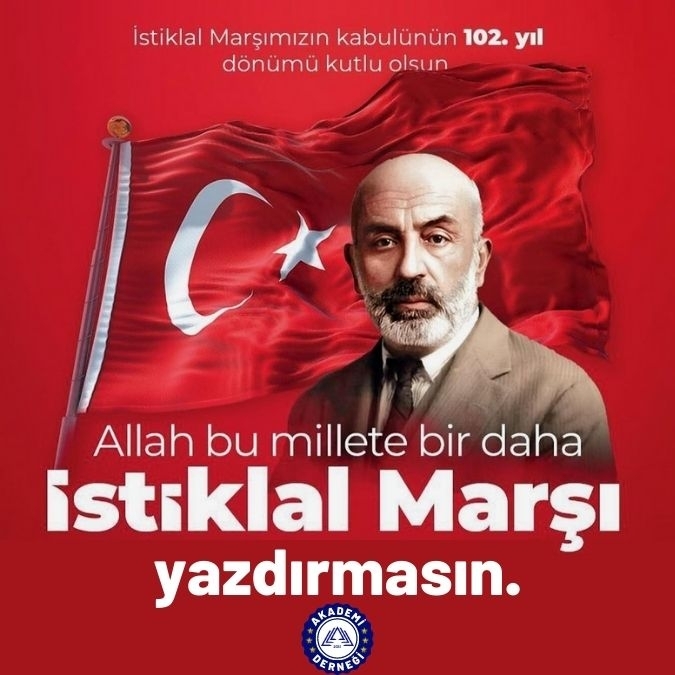 We celebrate the 102nd anniversary of the adoption of our National Anthem, the common voice and common feeling of our nation, by the Turkish Grand National Assembly on March 12, 1921, and we commemorate our poet of Independence, Mehmet Akif Ersoy, and our heroic martyrs with mercy and longing.