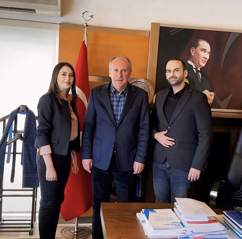 President of the Association of Academy , scientist and columnist Assoc. Prof. Onur Başar Özbozkurt and United Nations Sustainable Development Solutions Network Youth Initiative Program Sustainability Fellowship and Vice President of the Association of Academy Dr. Fatma Yeşilkuş visited the Chairman of the Homeland Party, Mr. Muharrem İnce, in his office.