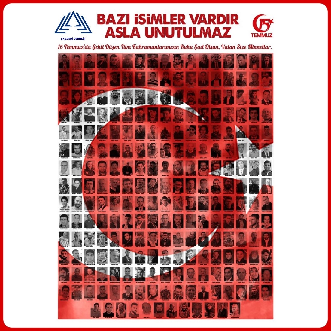 Başkanımız Doç. Dr. Onur Başar ÖZBOZKURT, 15 Temmuz Demokrasi ve Milli Birlik Günü için ülkemiz ve milletimize yaşatılmak istenen o karanlık geceyi canları pahasına aydınlatarak tüm dünyaya kahramanlık dersi veren tüm şehitlerimizi rahmetle andığını, gazilerimize hayırlı ve uzun ömürler dilediğini ifade etti.
