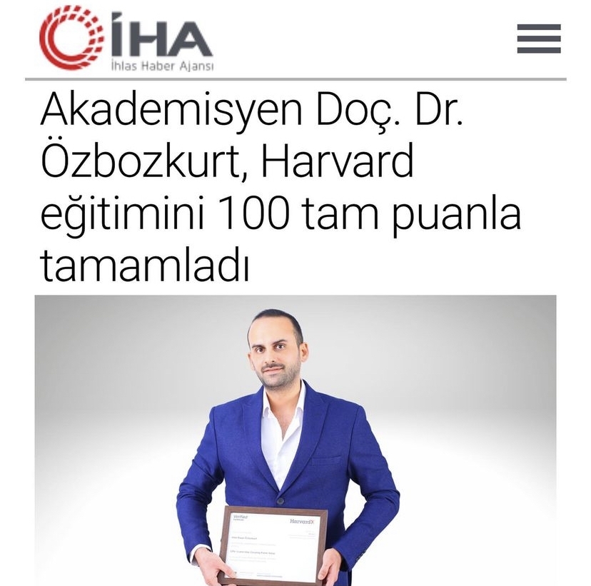 Akademi Derneği Başkanı bilim adamı Doç. Dr. Onur Başar Özbozkurt, Harvard Üniversitesinin iki ay süren kamu değeri oluşturan liderlik eğitimini 100 tam puan ile tamamlayarak başarı belgesini teslim aldı.