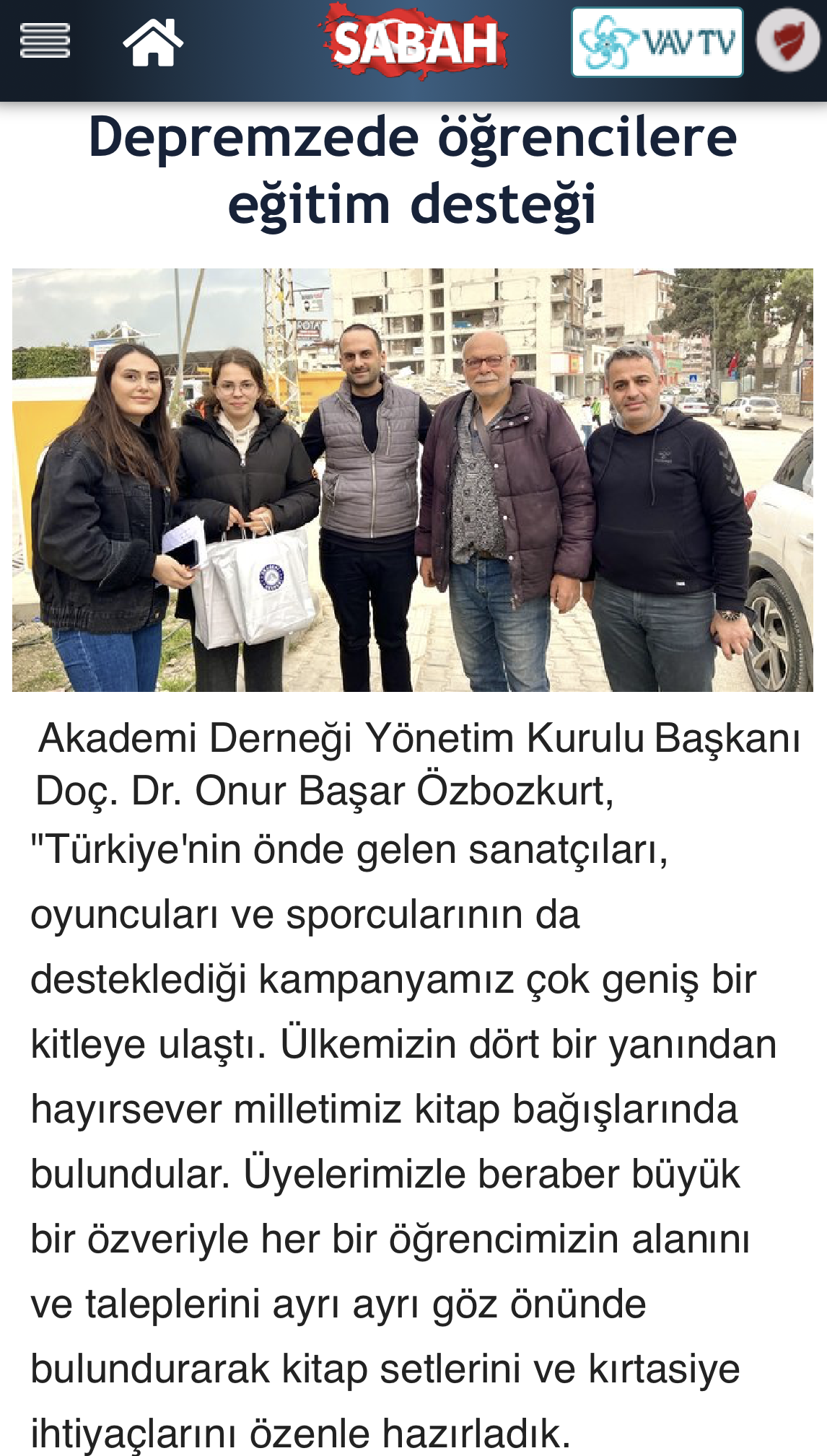 Akademi Derneği Yönetim Kurulu Başkanı Doç. Dr. Onur Başar Özbozkurt, "Türkiye'nin önde gelen sanatçıları, oyuncuları ve sporcularının da desteklediği kampanyamız çok geniş bir kitleye ulaştı. Ülkemizin dört bir yanından hayırsever milletimiz kitap bağışlarında bulundular. Üyelerimizle beraber büyük bir özveriyle her bir öğrencimizin alanını ve taleplerini ayrı ayrı göz önünde bulundurarak kitap setlerini ve kırtasiye ihtiyaçlarını özenle hazırladık. Hazırladığımız setlerin bir bölümünü Türkiye'nin çeşitli bölgelerine yerleşmek durumunda kalan öğrencilerimize kargoyla gönderdik. Diğer önemli bir bölümünü ise depremzede gençlerimizi tek tek ziyaret ederek Hatay ve Mersin'de kendilerine teslim ettik ve gençlerimizin diğer taleplerini de dinledik" dedi.