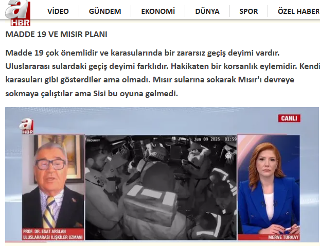 Gazze'ye yardım götürmek için denizden yola çıkan 2'si Türk 12 aktivistin olduğu Madleen Gemisi’ne İsrail dün baskın yaptı ve 12 gönüllüyü gözaltına aldı. Barbar İsrail, yardım gemisindeki aktivistlerin sınır dışı edileceğini duyurdu. Gelişmeleri A Haber canlı yayınına katılan Prof. Dr. Esat Arslan Değerlendirdi.