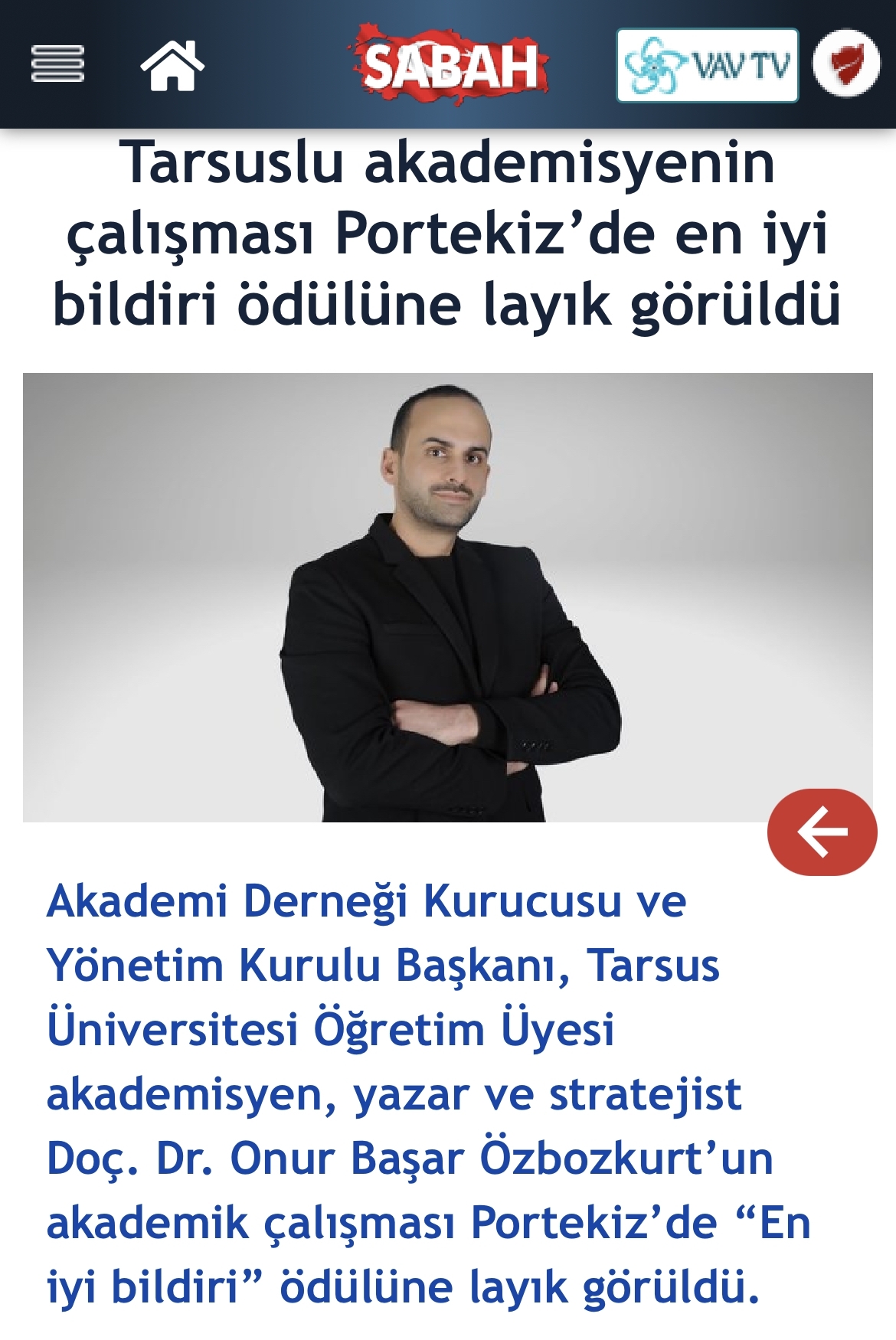 Akademi Derneği Kurucusu ve Yönetim Kurulu Başkanı, Tarsus Üniversitesi Öğretim Üyesi akademisyen, yazar ve stratejist Doç. Dr. Onur Başar Özbozkurt’un akademik çalışması Portekiz’de “En iyi bildiri” ödülüne layık görüldü.